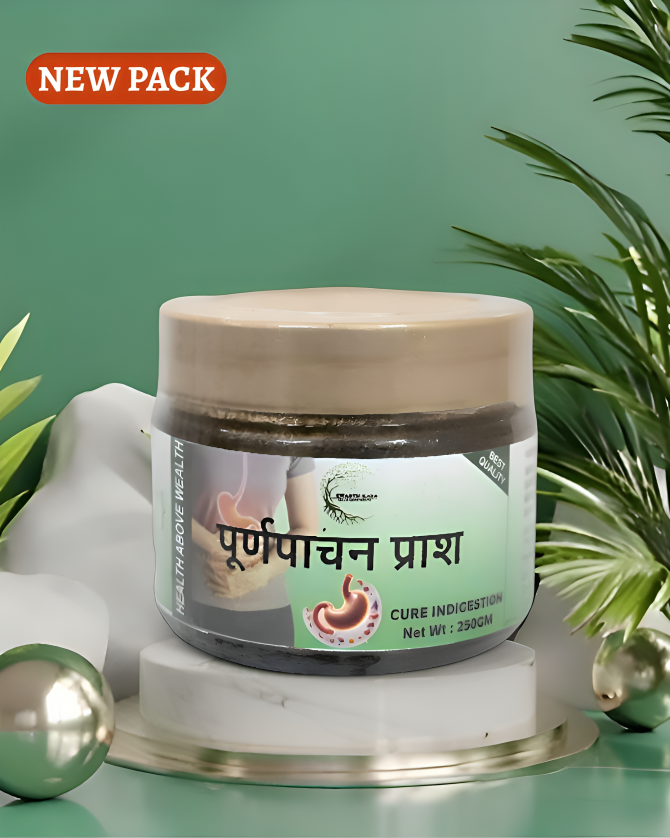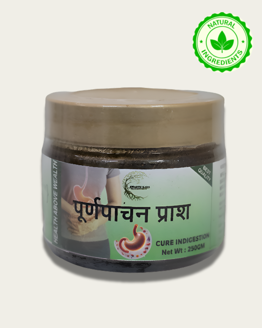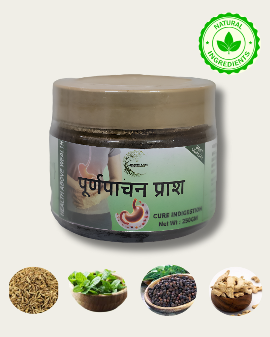 Puranpachan Prash – Digestive Health Prash is a potent Ayurvedic formulation designed to support healthy digestion and restore gut balance naturally. Enriched with traditional herbs like Jeera, Kali Mirch, Gulab Patra, Ajwain, Dalchini, Pudina, Amla, Javitri, Sonth, Tej Patta, Jaiphal, Haldi, Triphala, and Giloy, this semi-liquid supplement provides quick relief from bloating, gas, and indigestion.